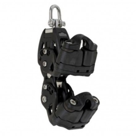 Acetal sheave, stainless steel strap for strength and long service life. Stiff glass bre reinforced cheeks to prevent lines from wedging with sliding swivel locking mechanism.
